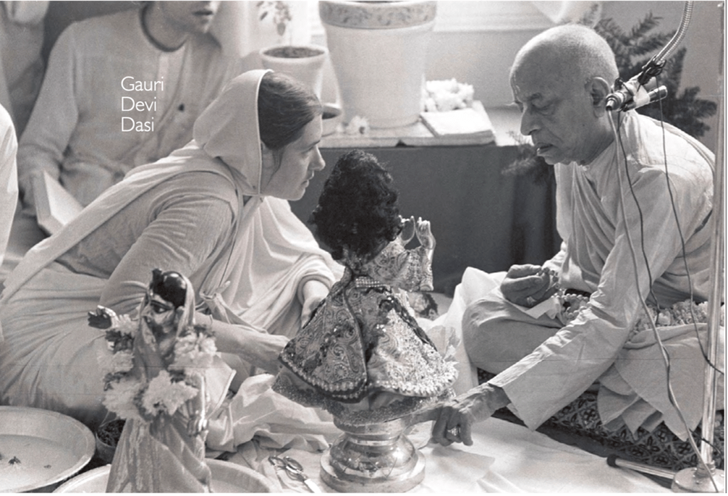 - y, en los casos en los que las instalaciones no contaban con las facilidades necesarias para los devotos, garantizándoles el compartir dichos recursos físicos. En la India, por ejemplo, Prabhupada se cuidaba de que sus discípulas contaran con medios de transporte adecuados, prasada y un lugar donde dormir.
